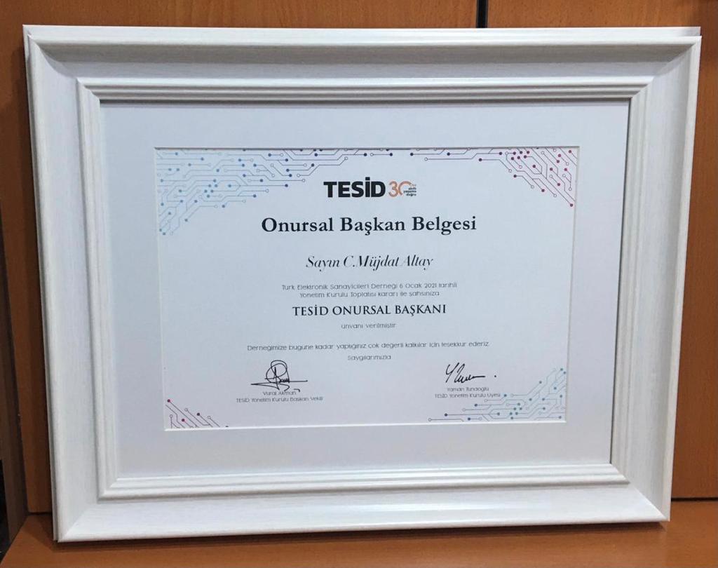 30 yılı aşkın süredir elektronik sanayi ve bilgi teknolojilerinde faaliyet gösteren tüm aktörleri bir araya getiren Türk Elektronik Sanayicileri Derneği (TESİD) Yönetim Kurulu C. Müjdat Altay’a Onursal Başkan unvanını verdi.