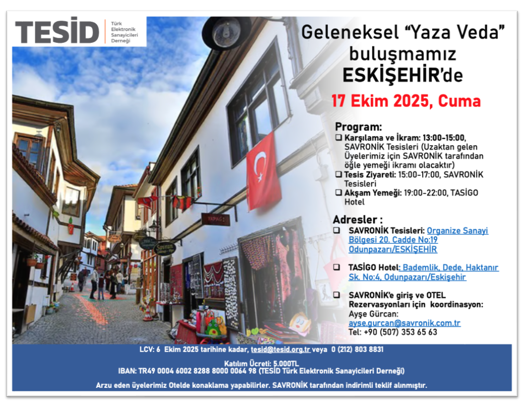 TESİD geleneksel “Yaza Veda” buluşmamız için sizleri 17 Ekim 2025 Cuma günü Eskişehir’e davet ediyoruz.